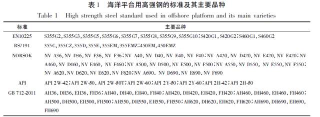 海洋平臺(tái)用鋼所遵循的通用標(biāo)準(zhǔn)主要為BS7191、EN10225、API及船用標(biāo)準(zhǔn)。我國(guó)于2011年也頒布了GB712-2011《船舶及海洋工程用結(jié)構(gòu)鋼》。