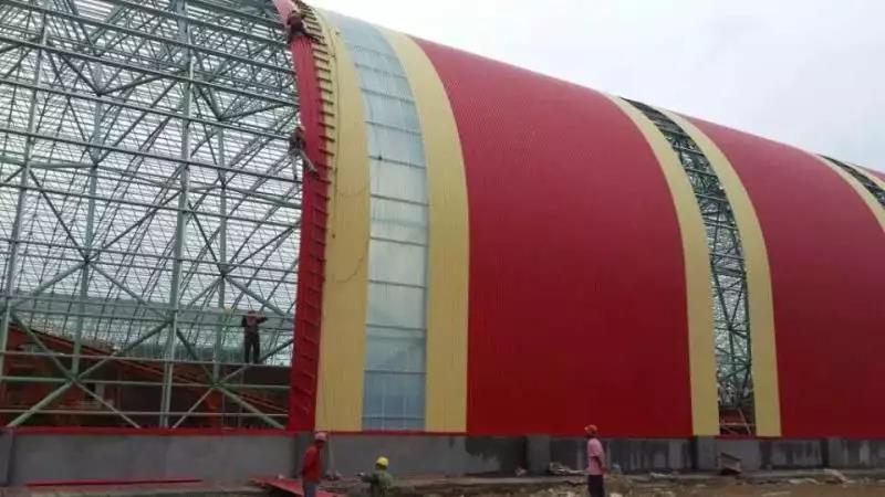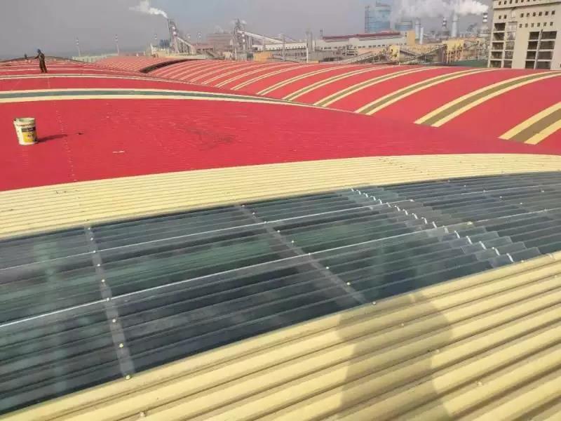 前期使用其他廠家彩涂產(chǎn)品,短時(shí)間內(nèi)多次發(fā)生銹蝕穿孔。后經(jīng)與寶鋼黃石公司聯(lián)系并邀請(qǐng)進(jìn)行現(xiàn)場(chǎng)走訪(fǎng),發(fā)現(xiàn)此批彩涂產(chǎn)品使用在煤氣發(fā)生爐區(qū)域,車(chē)間內(nèi)不僅屬高溫、高濕環(huán)境,還有二氧化硫等還原氣氛,鍋爐排放粉塵顆粒附著腐蝕較大,對(duì)產(chǎn)品耐蝕性提出更高的要求。經(jīng)與業(yè)主溝通,選用鍍鋁鋅基板,并提升背面膜厚及涂料種類(lèi)(環(huán)氧改為氟碳涂層,背面漆膜≥20um),經(jīng)5年時(shí)間跟蹤,漆膜完整,大大增強(qiáng)了使用壽命,降低更換周期,得到業(yè)主認(rèn)可。使用時(shí)間2013年,共計(jì)使用400噸。